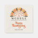 Optional personalised Thanksgiving napkins that say "Gobble Til You Wobble" surrounded by a turkey feather design in shades of autumn colours of brown, orange and golden yellow. "Happy Thanksgiving" and the name text field are editable. The text font style, size, colour and placement and all design elements can be changed/moved/deleted to fit your needs by clicking on the CUSTOMIZE tab. Contact the designer if you'd like this design on another product.