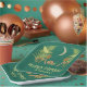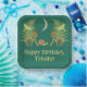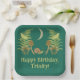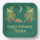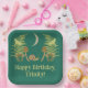 My illustrations depict a natural world with some dark undertones. A crescent moon hangs in the sky above a scene of green ferns, yellow moths, brown mushrooms and a green and brown snail all set against a dark teal coloured background. These paper plates are ready to be personalised with your own message in pale yellow lettering.