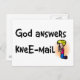 God answers prayer through knee mail religious gift item. Little boy kneeling down to pray to Jesus.