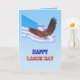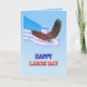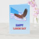 Have a good labour day. A beautiful mountain landscape with a bald eagle flying in the sky.