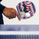 An Patriotic Ping Pong Paddle Done With A Cute Pair Of Gnomes Dressed In Red White and Blue