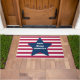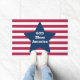 Doormat Door Mat for a decorative doorway entryway for home or office furnishing decor accessory printed with God Bless America Red White And Blue lettering and stripes artwork design by TheFabricSeal at Zazzle.com #ZazzleMade TheFabricSeal©️Original.