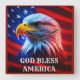 God Bless America US Flag Bald Eagle Square Wall Clock