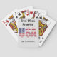 God Bless America with USA graphic, light grey background and ample room to personalise. Customise this deck of playing cards with initials, name, title-- using the Template provided. Easy to shuffle, smooth card stock. Dimensions: 2.5" x 3.5"; poker size playing cards. See "About This Product" at side for more information. I have purchased many of these decks for convention prizes; the printing and quality is excellent.