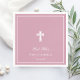 These simple yet classic baptism cocktail napkins would be perfect for the person you love's baptism celebration. They have a traditional white cross with "God Bless" in a classic script font, the name of the person being baptised, and the baptismal date all in white on dusty rose.