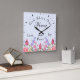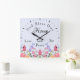 God Bless Our Home Floral Wildflowers Blue Square Wall Clock
