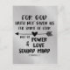 God has not given spirit of Fear Bible Verse postcards with silver background. Inspirational scripture from Timothy. God has not given us the spirit of fear, but of power , of love and of a sound mind. More postcards at Christian Quotes Shop. Link below: