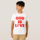 This boys t-shirt features a chunk five print font with red letters displaying the biblical saying "God Is Love" with the O in Love made replaced with a collection of the word Love made into a heart in this biblical saying quote theme. This tee is comfortable, casual and loose fitting, made from 100% cotton, with double-needle stitched bottom and sleeve hems for extra durability our tees fit and wears well on any and everyone.