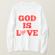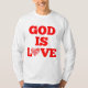 This long sleeve features a chunk five print font with red letters displaying the biblical saying "God Is Love" with the O in Love made replaced with a collection of the word Love made into a heart in this biblical saying quote theme. This long sleeve t-shirt is comfortable, casual and loose fitting, made from 6.0 oz, pre-shrunk 100% cotton, with double-needle stitched bottom and sleeve hems for extra durability has a smaller matching image on the back our tees fit and wears well on any and everyone.