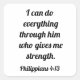 This bold Bible verse sticker is a favourite scripture verse for many Christians. "I can do everything through him who gives me strength. Philippians 4:13"