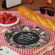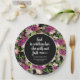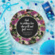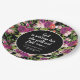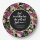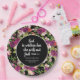 Blush pink and purple watercolor floral on black Christian Bible verse graduation party paper plates personalised with your name, school name (high school or college) and graduation year. Text says, "God is within her she will not fail. Psalm 46:5"