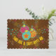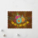 Colourful, whimsical, and fun God Jul & Gott Nytt År Ornaments holiday design greeting invitation card features three pretty ornaments with stars and dots in pink, aqua, orange, and yellow on a background of brown with colourful snowflakes of aqua, orange, yellow, and pink. Bright yellow text reads God Jul & Gott Nytt År! You can easily customise the back of these holiday greeting invitation cards with your own text message.