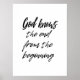 God knows the end from the beginning, so don't fret the in-between. Poster for inspiring Christians. You can put an image for the background or change the colour to anything you'd like.