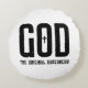 This round pillow has a design that features the words "God The Original Superhero" in a Harrison Rough print font with black letters in this biblical faith based quote and theme. This pillow is made with high quality fabric our pillows are soft and wrinkle-free the cover is machine washable.