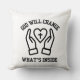 This throw pillow design features a yearbook solid print font with black letters displaying the phrase “God Will Change What's Inside” with a heart plus cross inside of set of praying hand icon in this faith based bible theme. This pillow is made with high quality simplex knit fabric our pillows are soft and wrinkle-free the cover is machine washable.