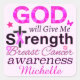Inspirational breast cancer quote of “GOD Will Give Me Strength” and “Breast Cancer Awareness Faith Hope Love” for breast cancer survivors and fighters who have faith in God.