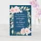 Congratulations on your wedding day card for goddaughter and her husband with pretty pink watercolor flowers, navy blue background and sentimental verse.