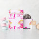 Birthday wrapping paper featuring a cute rag cloth doll with yellow wool hair in pink and red. Personalise this whimsical girls birthday paper with your relationship, name and age. Currently reads goddaughter Isabella 1 today. Uniquely painted in watercolor and designed by Sarah Trett.