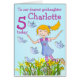Personalised goddaughter playing in a field of daffodils chasing blue birds in spring. Customise with your god daughters age and name. Original graphic art and design by Sarah Trett for www.mylittleeden.com