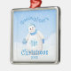 A fun keepsake ornament for your goddaughter on her first Christmas features an adorable snowman with a great big smile, carrot nose and blue fuzzy hat and gloves. the snowman is sitting on a snowy field with among a flurry of pretty snow flakes. Year may be changed using the template provided.