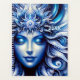 Personalised Planner - Goddess Celestial Blue Head January - This beautiful flowing, generative content digital Design shows a Head of a beautiful Woman with closed eyes and flowing long hair in the background is the divine celestial Universe. The main colours in this Art piece are different shades of blue, white.