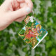 The key chain is made of metal and really sturdy. The flower design is really cheerful. The logo and colors are clear and crisp!