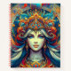 Personalised Journal Notebook - Goddess aesthetic Head flowing blue turquoise Hair Portrait -Month of April Vibes - This beautiful ai style Design shows a Head of a beautiful Woman with shiny blue eyes and decorative jewellery crown on in her head in a divine celestial Universe. The main colours in this art piece are teal, turquoise, orange, red, light creamy skin tone.