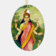 Lakshmi is depicted in Indian art as an elegantly dressed, prosperity-showering golden-coloured woman standing or siting in padmasana on a lotus throne, while holding a lotus in her hand, symbolising fortune, self-knowledge, and spiritual liberation. Her iconography shows her with four hands, which represent the four aspects of human life important to Hindu culture: dharma, kāma, artha, and moksha.