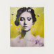 A gorgeous goddess of spring with pink flowers on a yellow background