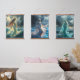 Each goddess is rendered in luminous detail—her flowing hair merges with crashing waves, her eyes shimmer like lightning, and her form is wreathed in mist and foam. The tapestries glow with an otherworldly aura, as if the very essence of the sea and storm has been woven into the fabric. The interplay of light and shadow creates a dynamic, lifelike presence, making the goddesses appear as though they might step forth from the threads at any moment.