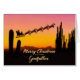 A Christmas card for your godfather showing Santa flying over the desert. Lots of tall cactus are seen in silhouette. Wish a merry Christmas from the desert with a lovely sunset coloured card.