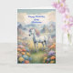 Send wishes for a magical birthday. Wish your godmom a happy unicorn birthday. A dreamy image of a white unicorn with a rainbow main standing in a field of flowers. in the background are majestic mountains.The perfect card to give those who love magical and mystical unicorns.