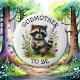 Woodland creatures themed Godmother to be baby shower button. A sweet watercolor illustration of a racoon in a patch of grass in the woods.