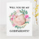 A beautiful round faux gold round geometric circle filled with pretty pink roses and blossoms forms a frame around your precious child's photograph which are framed by an elegant golden border edge. The inside has a black template for your personalized message. Ideal for parents looking to ask special people to be their Childs godparents.