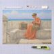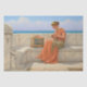 Tissue paper features "Songs Without Words" (1918) painting by John William Godward. This light-coloured, beautiful classic artwork features a woman holding a flute on a bench next to a caged bird with an ocean backdrop. Mainly shades of orange, blue, and brown.