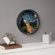 Introducing our latest addition the enchanting "Gogh Kitty" clock. This unique piece masterfully combines the classic beauty of Vincent Van Gogh's "Starry Night" with a whimsical twist—a charming cat playfully swatting at the swirling stars above. The vivid blues and yellows of the iconic painting serve as a mesmerising backdrop, while the silhouette of the cat adds an element of playfulness and warmth to the scene. Crafted with exquisite detail, this item brings a touch of whimsy and artistic elegance to any room. Whether you're looking to add a splash of colour to your living space or searching for the perfect gift for the art lover in your life, "Gogh Kitty" is sure to captivate and charm all who lay eyes on it. Printed on high-quality, durable material, this item is designed to maintain its vibrancy and allure for years to come. Transform your space with this delightful fusion of classic art and playful imagination—a truly unique piece that celebrates the beauty of the night sky and the curious nature of our feline friends.