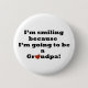 White button with text that says, "I'm smiling because I'm going to be a grandpa." Perfect way to announce the pregnancy to the new grandfather.