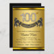 100th birthday party invitation with diamond numbers and banner on a beautiful rich black and gold background. This beautiful black and gold 100th birthday party invitation is easily customised for your event. You can change the background colour. This striking design works well for a man or woman. This is a printed design with no real diamonds, silver, glitter, etc.