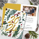 Festive Gold Script 2025 Christmas Pine Bough Greenery Red Berry Floral Photo Holiday Card. Send holiday warm wishes and greetings to your loved ones with this beautiful card. All the texts are pre-arranged for you to personalise easily and quickly with your own details. Wish you all a Happy Holidays and an Amazing New Year! Please visit our store for many other beautiful card options. https://www.zazzle.com/collections/2023_new_year_cards-119173159128235768