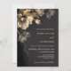This elegant wedding invitation features gold flowers on a black background. Dark aesthetic wedding invitation with your photo and a scannable qr code for your wedding website on the backside.