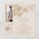 This wedding invitation showcases a minimalist and refined aesthetic, featuring soft, neutral tones and an ethereal botanical design. At the top, delicate, three dimensional floral elements in beige and gold hues gracefully drape across the page, creating a serene and organic feel. The overall color palette is warm and understated, complementing the elegant typography. The names of the couple are highlighted with a subtle contrast of fonts, using a graceful handwritten script for a touch of romance. Perfect for a modern, nature-inspired celebration, this invitation conveys understated elegance and timeless beauty.With your photo and a scannable qr code for your wedding website on the backside.