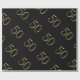 Birthday Gift Paper | Metallic Gold 50 on black background. 50th Birthday Gift Wrapping Paper