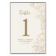 Cream ivory gold botanical surprise 50th wedding anniversary celebration table number. Minimalist modern design features botanical accents and typography script font. Simple floral card perfect for a stylish party.