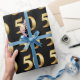 Elegant Stylish 50th birthday wrapping paper. Design features of 50 gold patter on black background.