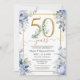 Gold 50th Wedding Anniversary Dusty Blue Floral Invitation