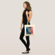 Gold Abstract Modern Monogram Initial Tote Bag. Features gorgeous gold over vibrant shades of pink, blue, and purple abstract washes with beautiful gold veined accents. With transparent creamy white centre with a thin border shown in charcoal with a customisable charcoal grey monogram initial.