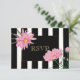 Gold Accent Black Stripes Pink Daisies RSVP Card