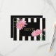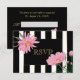 Floral response cards - Modern black strips edged in gold , gold text and pretty light pink Chrysanthemums accenting the bold black stripes.