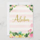 Aloha or Hawaiian themed photo first birthday invitation featuring a faux gold calligraphy heading, some lovely floral arrangements, a flamingo and faux gold dots. Your little girl's photo appears in a arched frame.