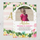 Gold Aloha Floral Flamingo Arch Photo 1st Birthday Invitation